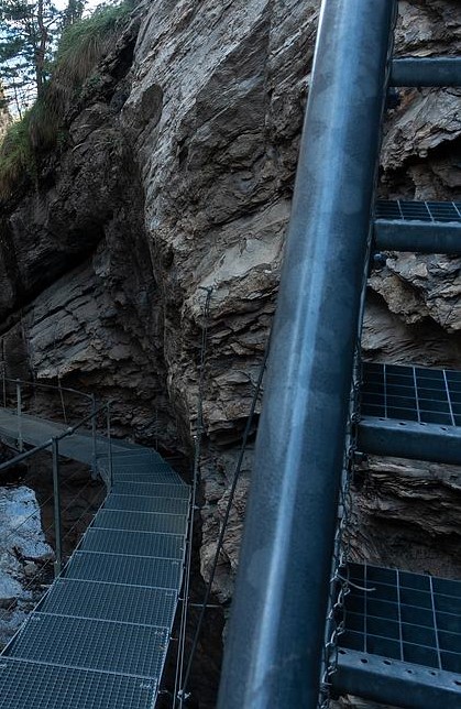 Für die zweite Gruppe führte der Pfad gleich beim Bahnhofgebäude Hohtenn ziemlich steil zum gleichnamigen Dorf hinunter. Dort suchten wir den weniger bekannten Suonenweg auf und wanderten fast ebenen Weges ostwärts der murmelnden Wasserleitung «Stägeru-Sue» entlang. Die Walliser Felsensteppe trug noch ihr saftig-frisches Frühlingsgrün und plötzlich entdeckten auch wir das erste «weisse Waldvögelein» (die Orchidee des Jahres 2017!). Unterwegs galt es zuweilen, einige heikle Passagen zu meistern: Die munteren Gespräche wurden dann jäh unterbro-chen und die Aufmerksamkeit blieb ganz auf unsere Tritte gerichtet. Nach einer kurzen Rast querten wir in Einerkolonne einen Tunnel und legten dann weiter über Gitterpassagen und Metalltreppen rund 100 Höhenmeter zurück. Am Ende einer imposanten Schlucht erreichten wir über eine kurze Hängebrücke Brägji, wo auch wir dann auf den klassischen BLS-Südrampenweg gelangten und unsere erste Gruppe bei der Chrütterbeiz wieder einholten.