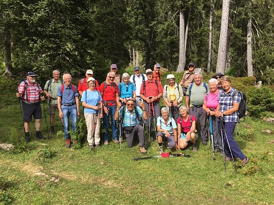 | JanuarFebruarMärzAprilMaiJuniJuliAugustSeptemberOktoberNovemberDezemberFotos + BerichteFoto-Upload | Bergwanderung Güggisgrat 21 wanderfreudige SAC-Senioren finden sich im Restaurant «Regina» in Waldegg am Ostrand von Beatenberg ein. Covid-Zertifikat, Maske und dann auf der Terrasse den Startkaffe. Bedienung japanisch, sehr freundlich aber leider ist «Nussgipfel» ein Fremdwort. Ja, die Globalisierung! Güggisgrat? Wo ist denn der? Alle kennen das Niederhorn und das Gemmenalphorn, aber den verbindenden Grat dazwischen kaum. Wir fahren zur Alp «Chüematte». Von dort steigen wir bei herrlich mildem Frühherbst-Wetter zum Oberberg empor. Die grössere Gruppe nimmt den Weg zum Gemmenalphorn unter die Füsse, während die Gemütlichen zum Oberbergfeld wandern. A propos Wetter: Im Vorfeld spielte sich wieder ein richtiger Meteo-Krimi ab. Ein paar Tage zuvor wurde für den heutigen Dienstag schönes Wetter gemeldet. Je näher der Dienstag anrückte, desto wackliger wurde die Prognose und ein, zwei Tage vorher kündigte die Meteo eine Störung an. Das gab ein Hin und Her und nach einigen Telefonaten fasste Walter Kumli den Entscheid: Wir gehen! Und der war goldrichtig. Die Schnelleren steigen nun aufs Gemmenalphorn. Kaum auf dem Sattel sehen wir eine ganze Gemsenfamilie. Das Kleine schaut uns verwundert an. Die Tiere sind nicht sehr scheu, ziehen sich aber dann doch in die steilen Felswände zurück. Bei den Menschen weiss man ja nie...Andere Kameraden haben auch einen Steinbock gesichtet. Immerhin gibt es hier noch wild lebende Alpentiere mit Nachwuchs. Die Rundumsicht auf dem Gemmenalphorn ist beeindruckend auch wenn es heute etwas dunstig ist. Zurück zum Burgfeldstand, dem höchsten Punkt der Wanderung. Mit seinen 2063 m.ü.M. ist er 2 m höher als das Gemmenalphorn. Im Oberburgfeld treffen wir auf die Gemütlichen und gemeinsam geht es nun auf dem abwechslungsreichen Pfad zurück zum Parkplatz auf der Chüematte. Nach einer Pause fahren wir ins «Regina» hinunter, wo wir abrechnen und noch ein wenig zusammensitzen.
